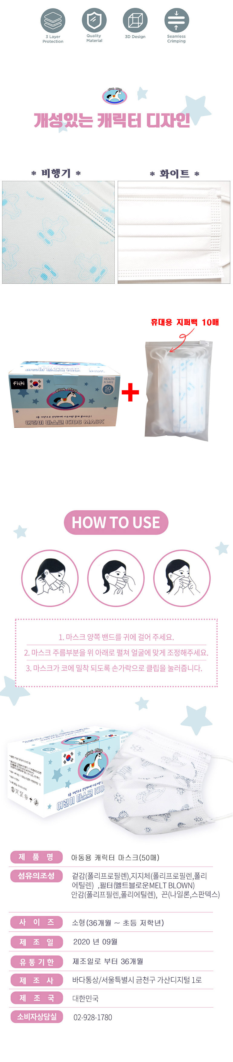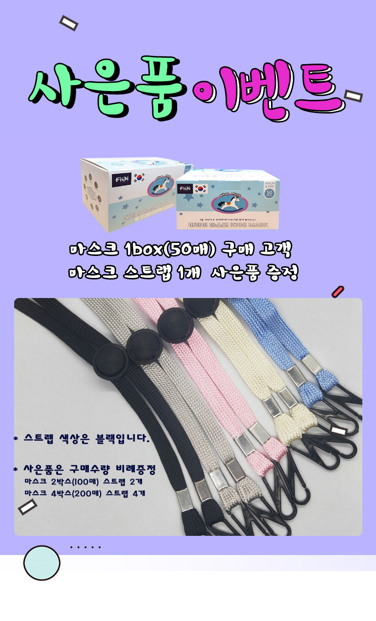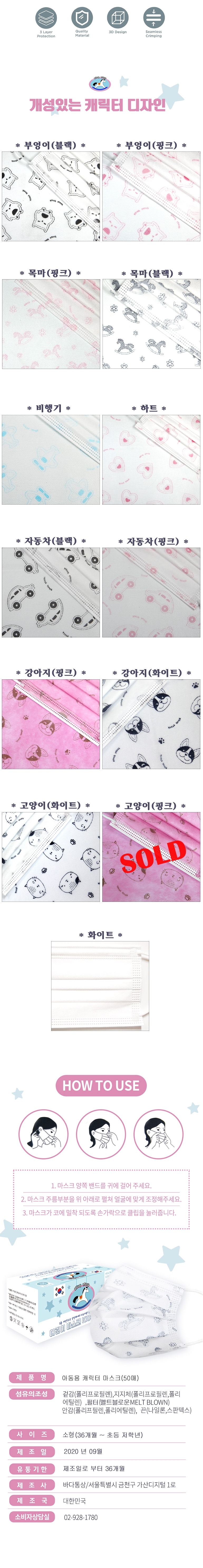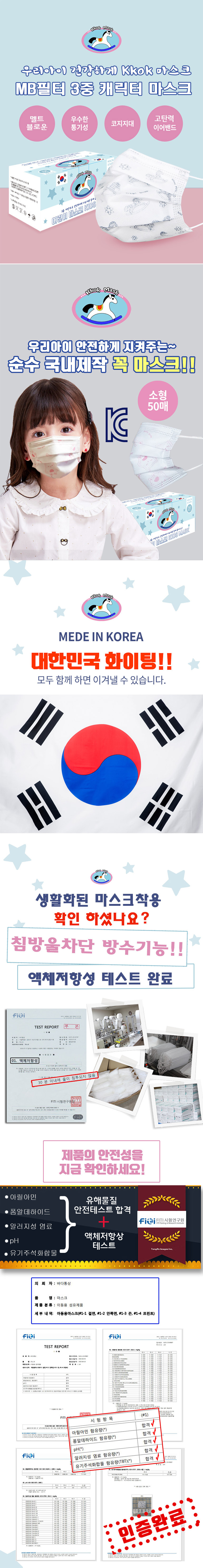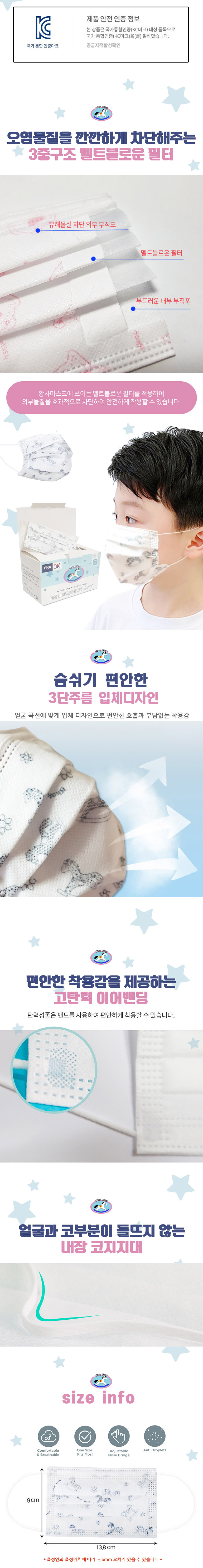 50pcs per Box / 3ply Filtration / Wire string / Meltbrown Filter / Made in Korea / Kid size